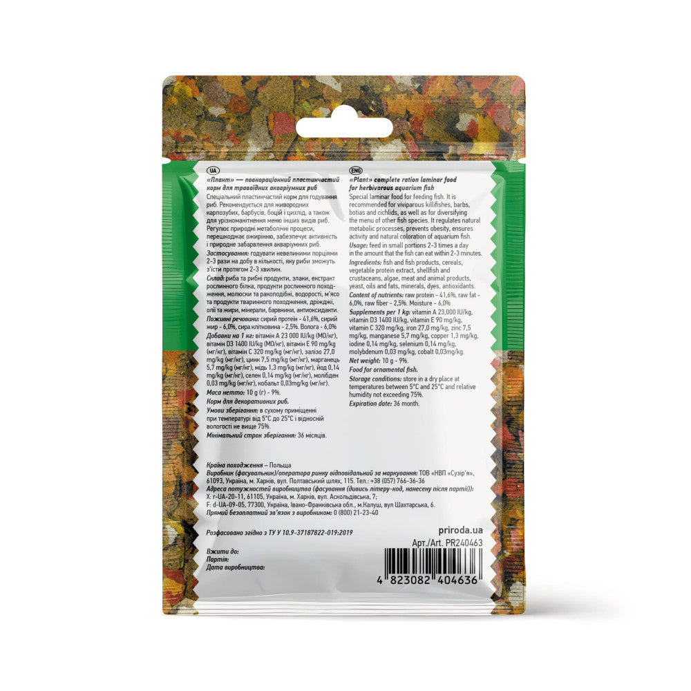 Корм Природа Біовіт «Плант» для травоїдних риб, пластинчатий, 10 г