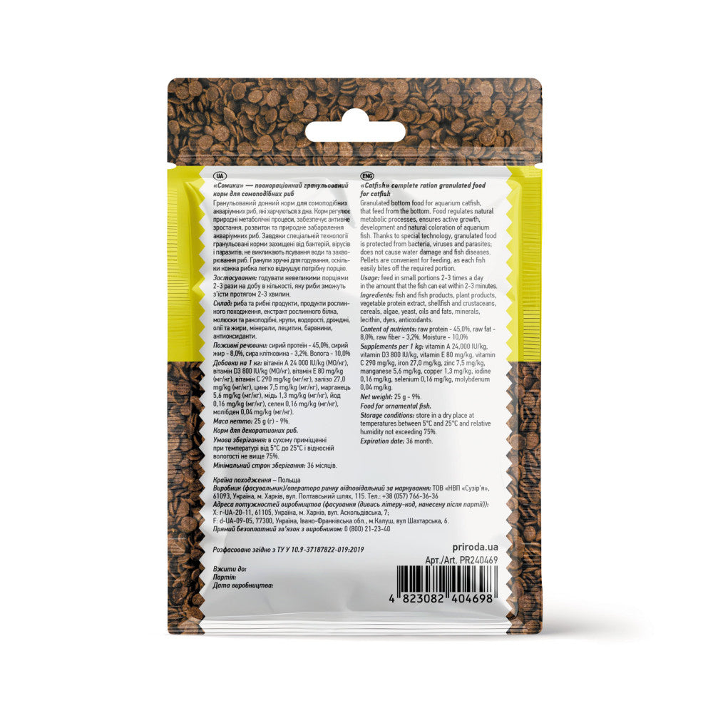 Корм Природа Біовіт «Сомики» для донних акваріумних риб, гранульований, 25 г
