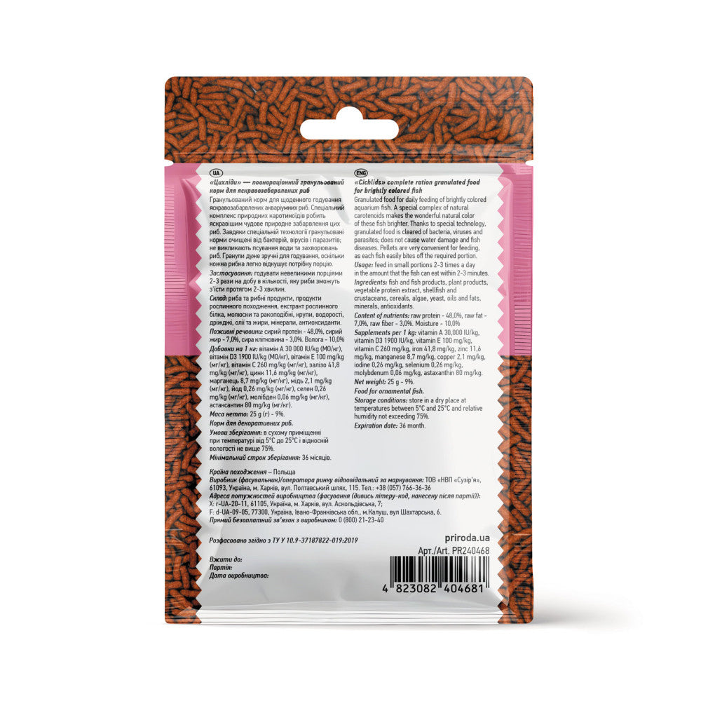 Корм Природа Біовіт «Цихліди» для цихлід та яскраво-забарвлених риб, гранульований, 25 г