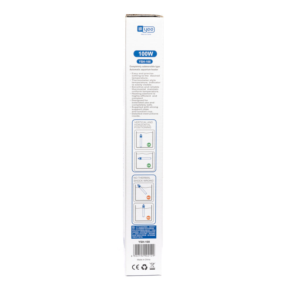 Серія автоматичних заглибних обігрівачів YSH вироблена з нержавіючої сталі. Надійний міцний корпус чудово підійде для крупних риб та черепах. Простий в установці та експлуатації. Встановлюється за допомогою присосок в місцях з гарним протоком води для рівномірного нагрівання води в акваріумі. Зверху присутній зручний регулятор для налаштування бажаної температури. Обігрівач підтримує встановлену користувачем температуру.