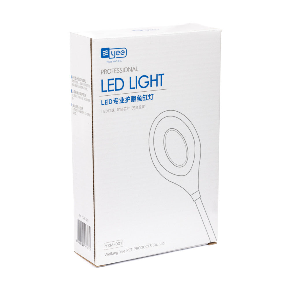 Акваріумний овальний світильник YEE для наноакваріумів. Має природне розсіяне та м'яке світло, не подразнюючи очі. Гнучка ніжка дозволяє обертати світильник на 360 градусів. Висока яскравість без мерехтіння. Регульований фіксатор дозволяє кріпити світильник на склі від 4 мм до 14 мм.