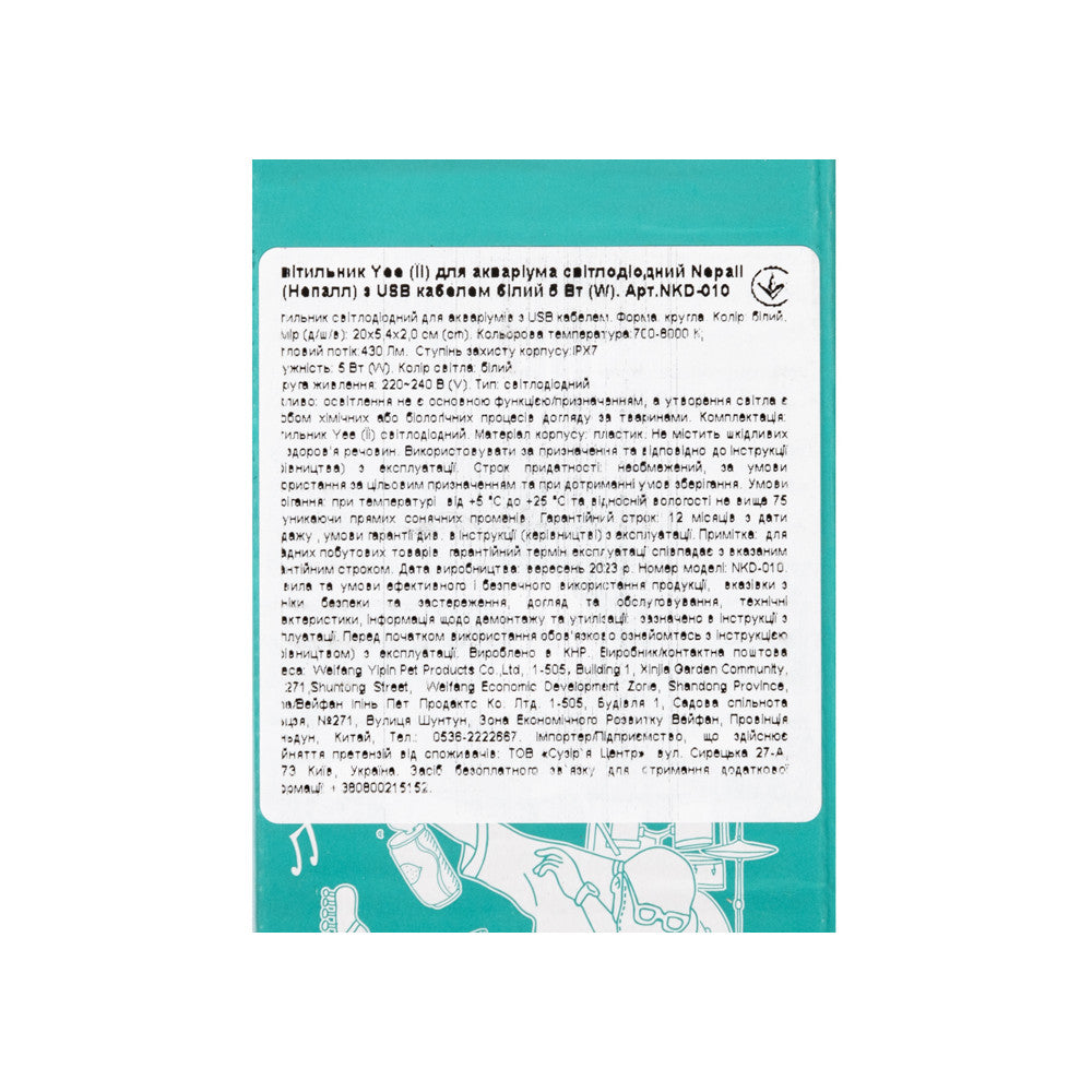 Світильник для акваріума Yee Nepall світлодіодний з USB кабелем, 3,5 Вт