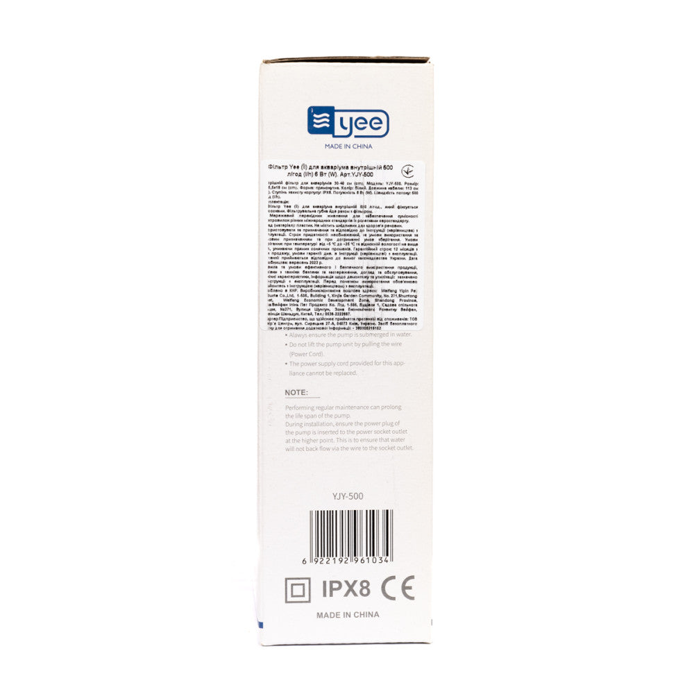 Фільтр для акваріума Yee внутрішній, 500 л/год, 6 Вт