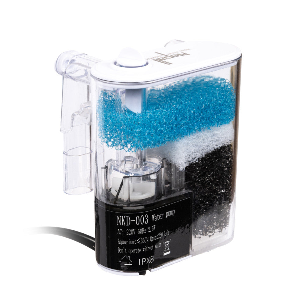 Акваріумний навісний фільтр Nepall - це ефективне та вишукане рішення для наноакваріумів. Фільтр оснащений багатошаровою фільтраційною системою для очищення води. На корпусі фільтра присутній регулятор течії. Фільтр є енергозберігаючим за рахунок низького споживання та майже безшумний.